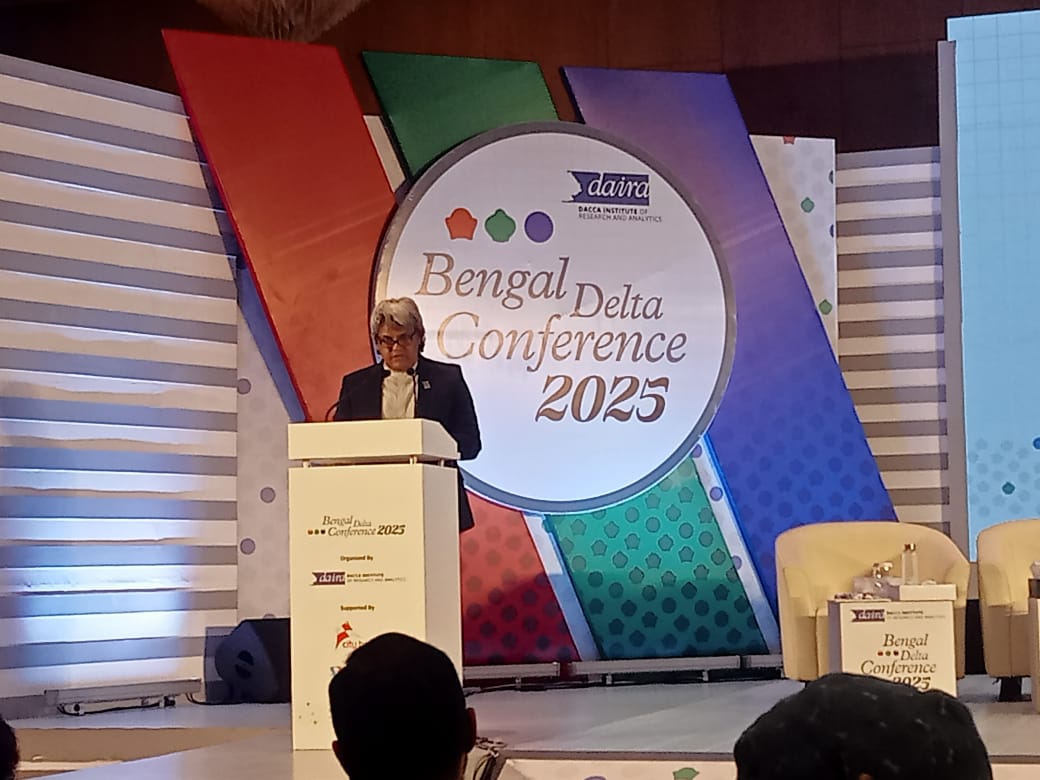 ৩০ আগস্ট ২০২৫ তারিখে ঢাকার ইন্টারকন্টিনেন্টাল হোটেলে ঢাকা ইনস্টিটিউট অব রিসার্চ অ্যান্ড অ্যানালিটিকস (DAIRA) আয়োজিত বেঙ্গল ডেল্টা কনফারেন্স ২০২৫-এ অতিথিরা বক্তব্য রাখেন।