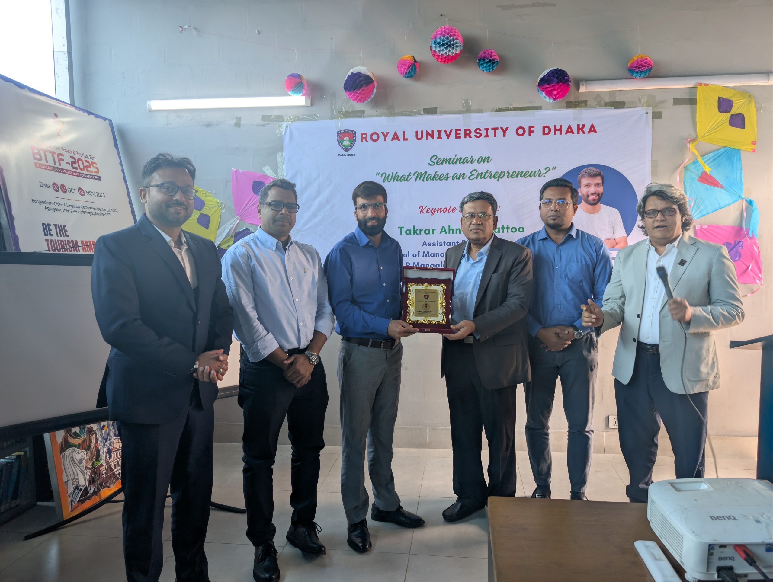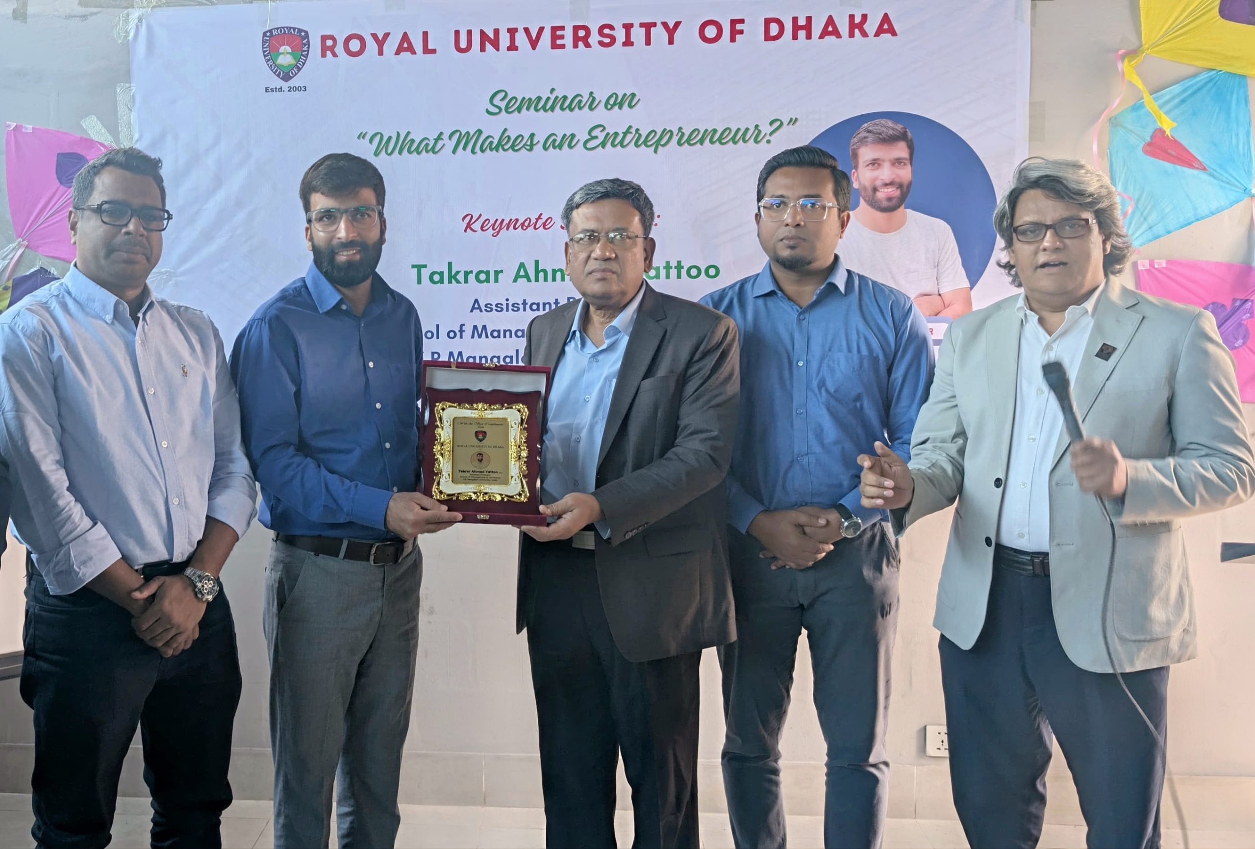Dhaka,Shadab Hasin: A vibrant and inspiring session on “What Makes an Entrepreneur?” was held at the Royal University of Dhaka, where students and faculty members gathered to explore the essence of entrepreneurship and innovation. The distinguished keynote speaker Takrar Ahmad Yattoo, Assistant Professor, School of Management and commerce,KR Mangalam University ,India delivered a powerful and thought-provoking address that captivated the audience and created an atmosphere of enthusiasm and learning.