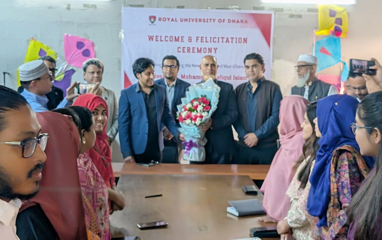 Royal University of Dhaka RUD Welcomes Newly Appointed Vice Chancellor(acting )Professor Dr. Mohammad Rafiqul Islam.The Board of Trustees, along with students, teachers, officers, and staff of the Royal University of Dhaka, warmly welcomed the newly appointed Vice Chancellor, Professor Dr. Mohammad Rafiqul Islam. Today, Professor Islam, formerly of Shahjalal University of Science and Technology, formally assumed office as the Vice Chancellor of the university.