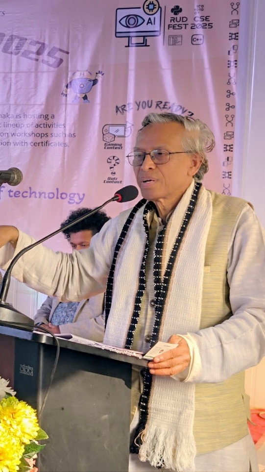 In the first session, the chief guest was Ekushey Padak–winning eminent educationist, University of Dhaka professor and political adviser to the BNP Chairperson, Dr Sukomal Barua. He expressed his admiration for the creative initiatives of the students of Royal University of Dhaka. He highly praised the contribution of freedom fighter Dr H B M Iqbal for establishing a non-profit university in the heart of Dhaka. Dr Barua expressed hope that a convocation would be held soon under the leadership of the newly appointed Vice-Chancellor, which would inspire and energise students. He also assured all possible cooperation and urged students to focus on science-based thinking and creative research to cope with the demands of the modern era.